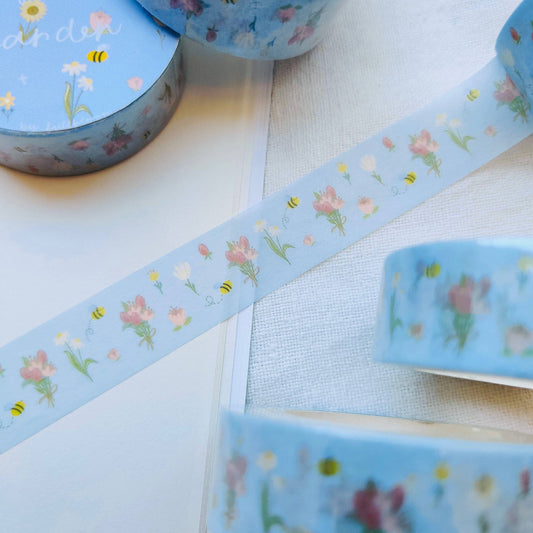 Full Bloom and Co. - Spring Vibes Blue Washi Tape with Bees and Flowers