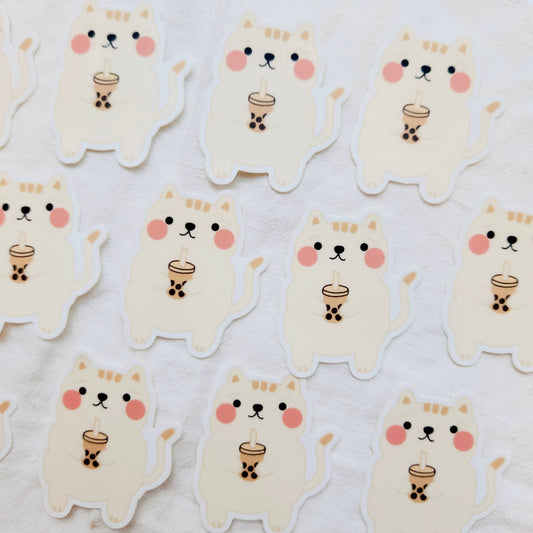 Full Bloom and Co. - Cat Drinking Boba Die Cut Sticker