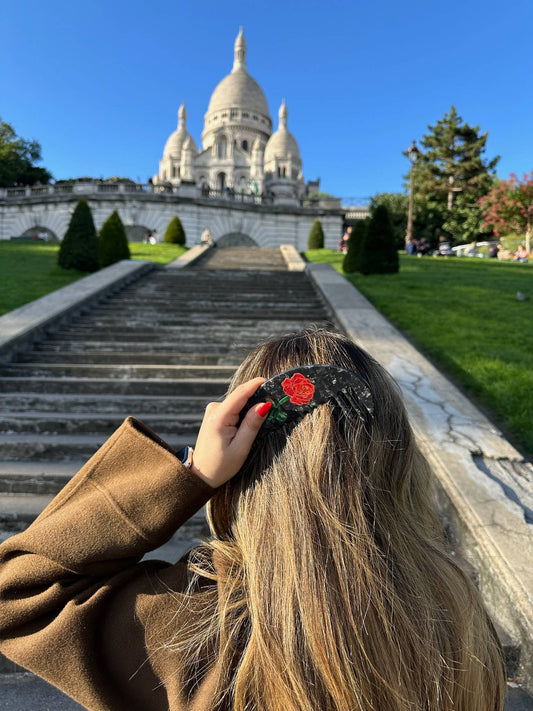 Solar Eclipse - Hand-painted Spring Rose Gua Sha Treatment Hair Comb