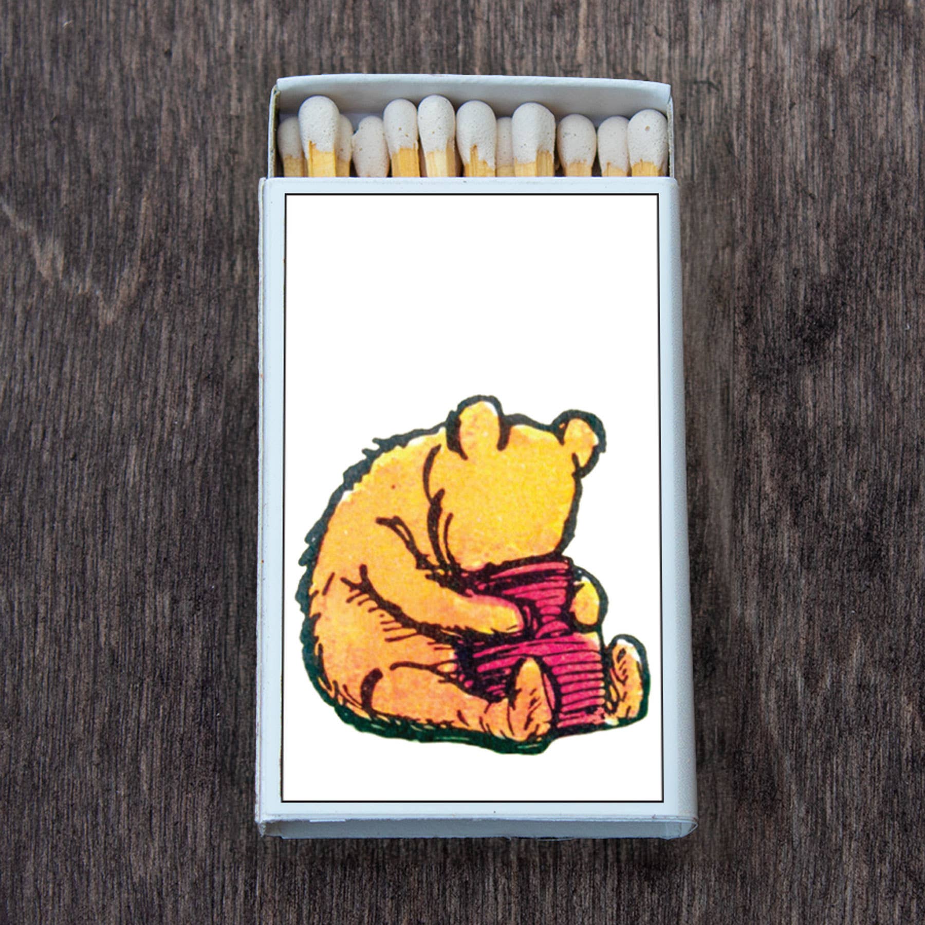 • Light your candles and incense with these stylish decorative matches • This unique box of matches features an illustration by E. H. Shepard from the original Winnie the Pooh books on both sides • Each box contains 20-23 matches and measures about 2.25”x1.5”x.5” •