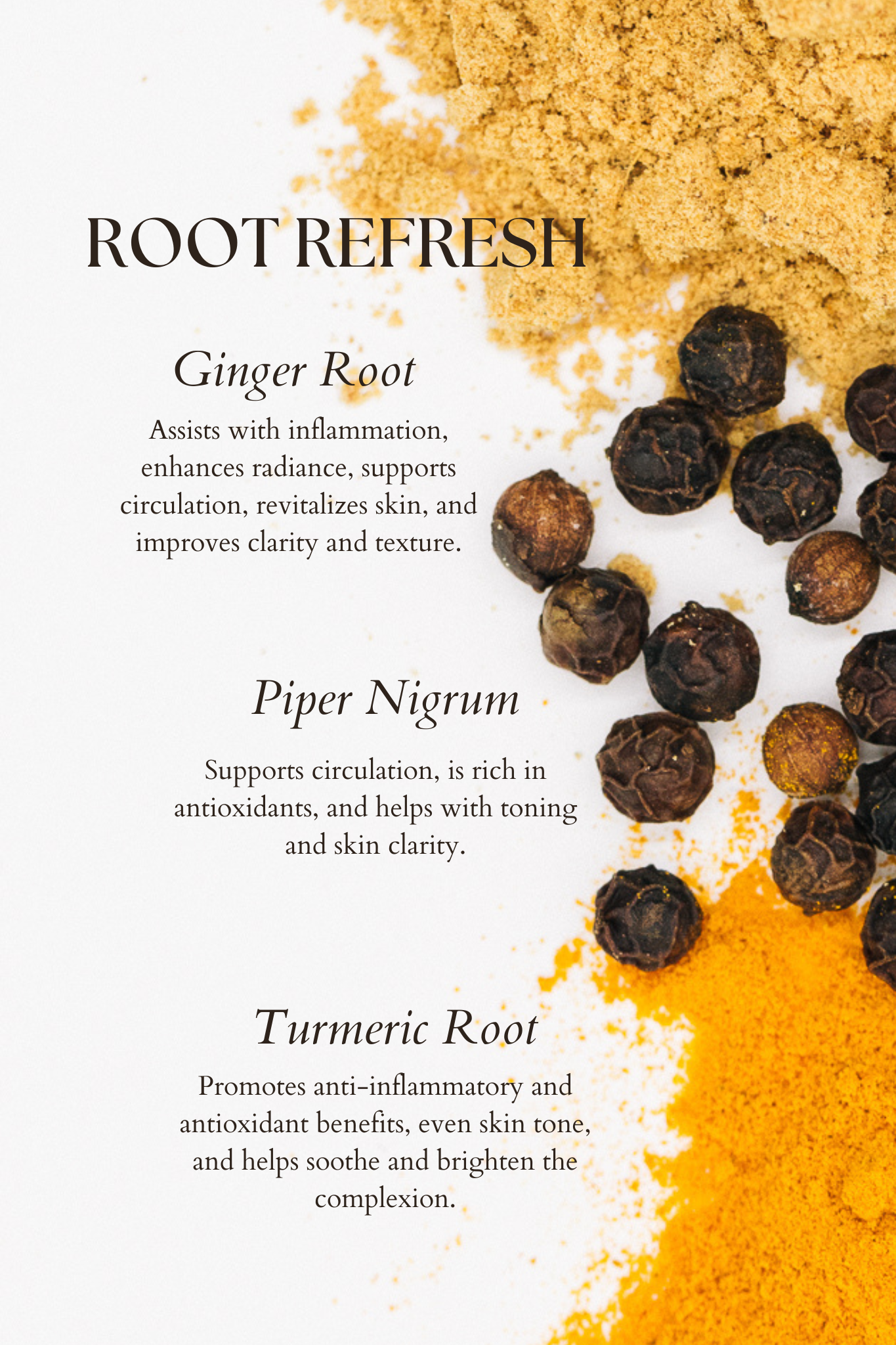 Full Ingredient List: Citrullus Lanatus (Watermelon) Seed Oil*, Helianthus Annuus (Sunflower) Seed Oil*, Vitis Vinifera (Grape) Seed Oil *, Rubus Idaeus Seed (Raspberry) Extract, Tocopherol (Non-GMO Vitamin E from Sunflower), Curcuma Longa Root (Turmeric) Root Oil*, Zingiber Officinale (Ginger) Root Oil*, Piper Nigrum (Black Pepper) Seed Oil, Rosmarinus Officinalis (Rosemary) Leaf Extract *Organic