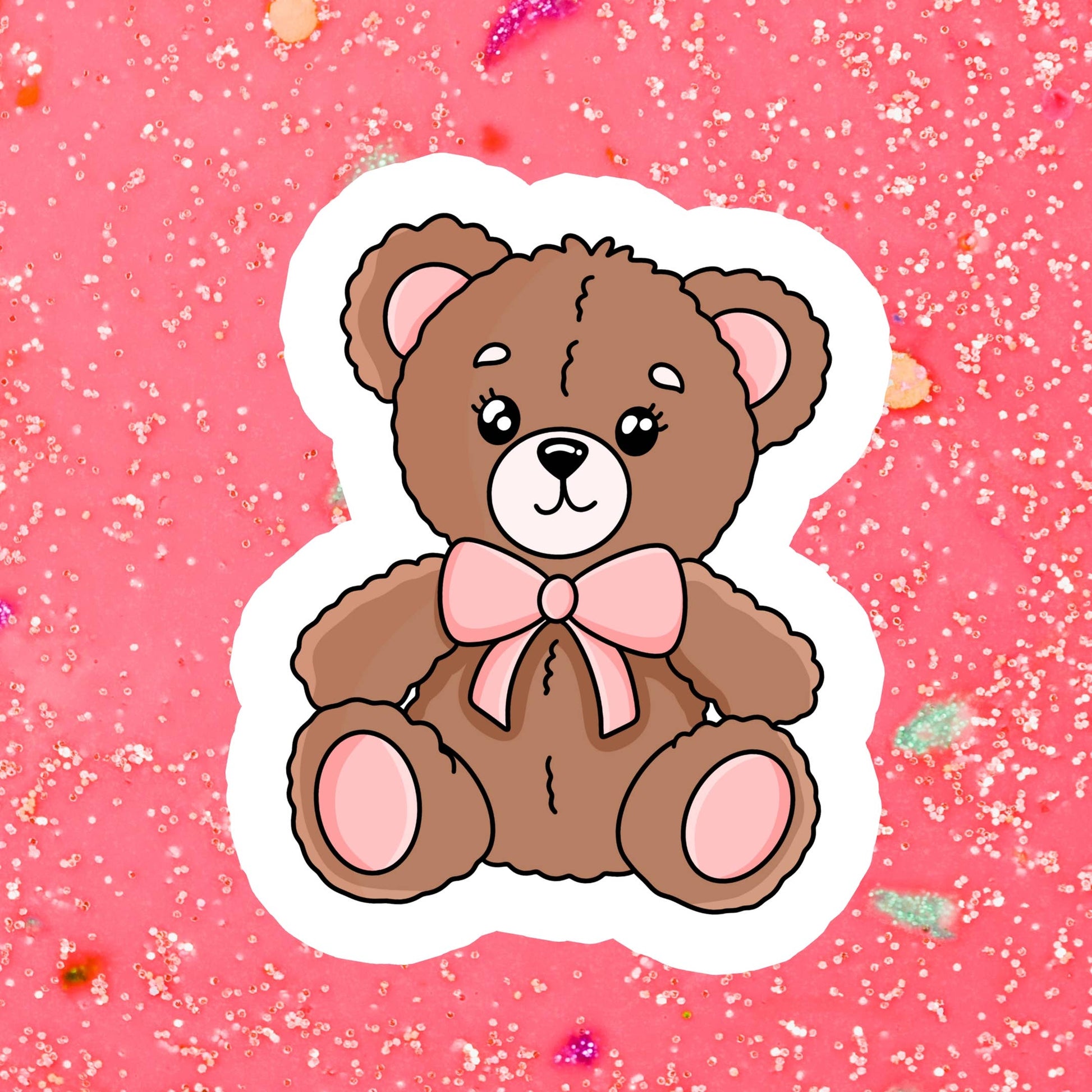 Stickers+ X Ashley Bexar -Pink Bow Teddy Bear - Cute Teddy Bear Girly Waterproof Vinyl Sticker: Matte / I want LOOSE stickers