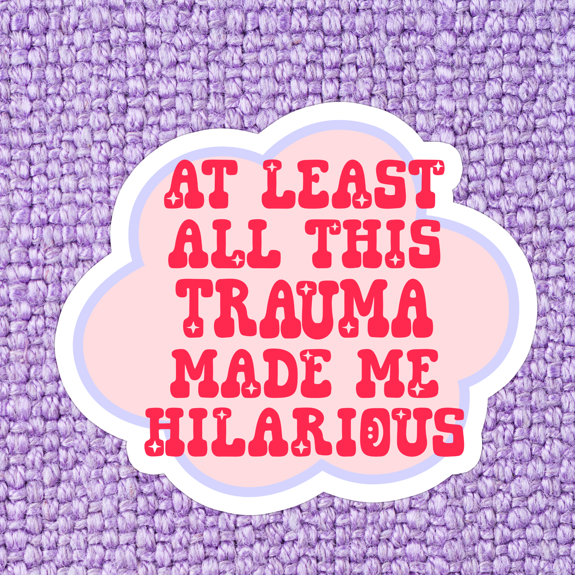 " At least all this trauma made me Hilarious " ❤ Sizing: All stickers measure 3" in size, determined by height or width, whichever is larger. ❤ Material: I handcraft each sticker using premium vinyl sticker sheets and apply a high-quality vinyl transparent top coat, making them waterproof. ❤