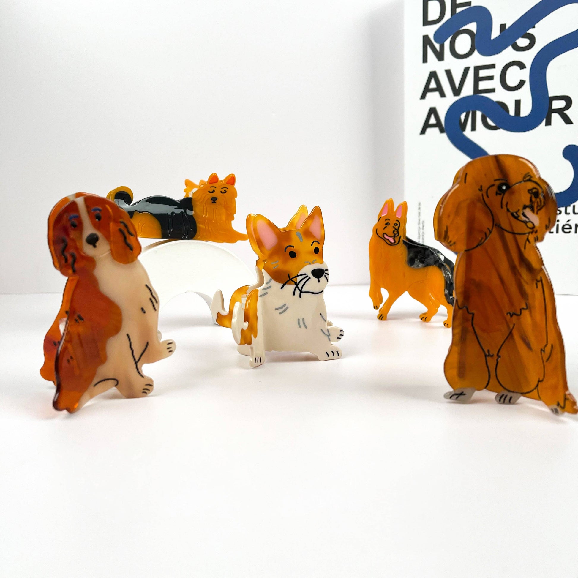 Add a touch of canine charm to your hairstyle with the Dog Series Claw Clip, featuring adorable Shih Tzu and Teddy designs. Crafted from high-quality acetate, this beautifully detailed hair clip captures the lovable essence of these fluffy brown dog breeds. The sturdy claw clip provides a secure and comfortable grip, making it perfect for all hair types. Whether you're a proud dog owner or a fan of cute and unique accessories, this clip is a must-have for your collection.